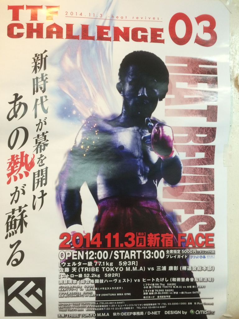 そして3日はTRIBEの若手(佐藤天・小川徹・安藤達也)が出場するTRIBE TOKYO FIGHT が13時から新宿フェイスであります。
